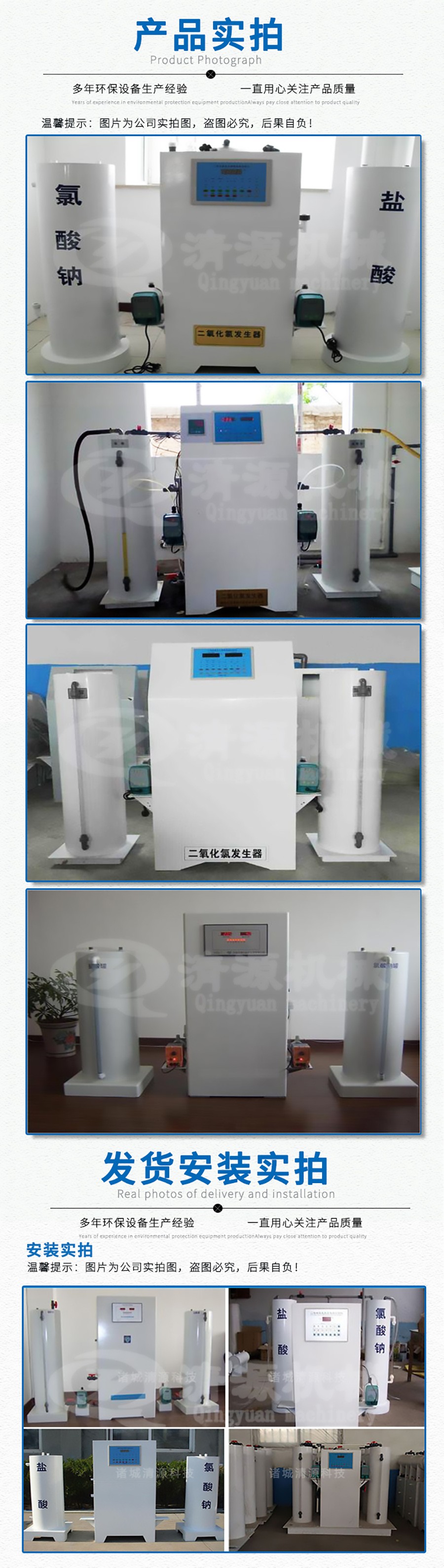 1、設備采用負壓曝氣、正壓注入技術來生產(chǎn)二氧化氯消的毒液